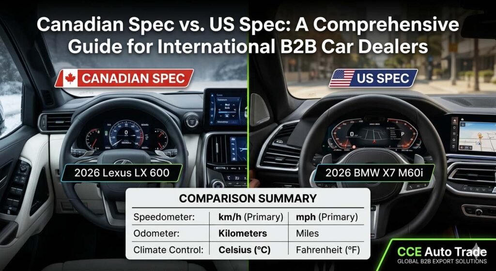 B2B Insight: For markets in the Middle East (UAE, Saudi Arabia) and Central Asia (Kazakhstan, Uzbekistan), Canadian-spec vehicles are often preferred because they align with local metric standards, requiring zero cluster conversion.